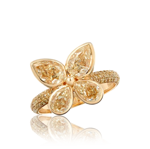The ring is made of 750 yellow gold. 4 Pear-cut diamonds with a total weight of 2.31 carats. Fancy Light Yellow-YZ/VVS-VS.