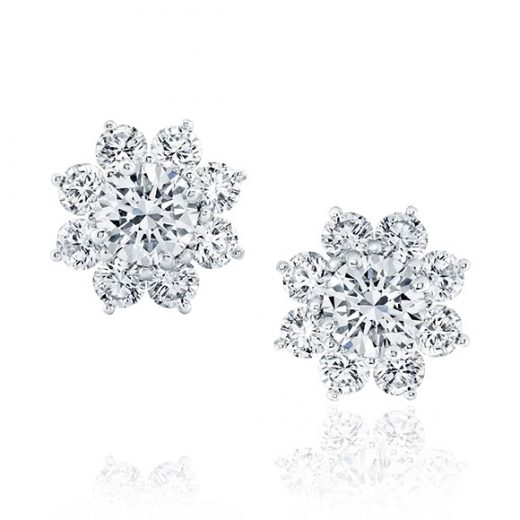 The earrings are made of 750 white gold. 2 central diamonds 5.02 carats F/VS2 EXEXE F GIA — 5.01 carats F/VS2 EXEXE F GIA. Sprinkling around the earrings with stones of 0.5 carats with a total weight of 9.08 carats color F-G purity VVS for each stone GIA certificate.