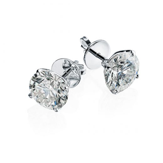 Diamond earrings are made of 750 white gold. Weight: 5.59 grams. 1 round-cut diamond 3.01 carats F/VS1 GIA — certificate. 1 round-cut diamond 3.01 carats F/VS2 GIA — certificate. Threaded pin lock.