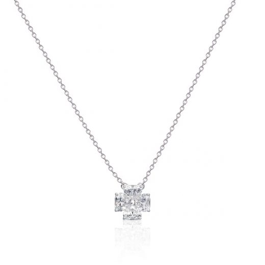 The pendant is made of 750 white gold. Weight: 2.95 grams. 4 heart-cut diamonds with a total weight of 1.23 carats EFG/VS. Chain length: 44 cm.