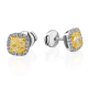 The earrings are made of 750 sterling white gold. 2 Cushion-cut diamonds weighing 1.01-1.00 carats. Fancy Light Yellow/VS1 (GIA 2536688085-7511564894)