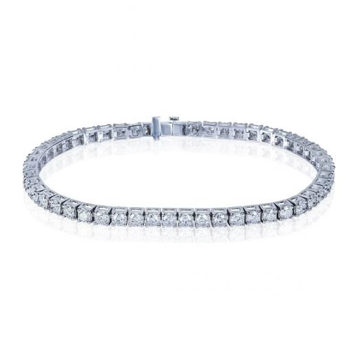 The bracelet is made of 750 white gold. 51 round-cut diamonds with a total weight of 4.16 carats G-H/VS. Size 17