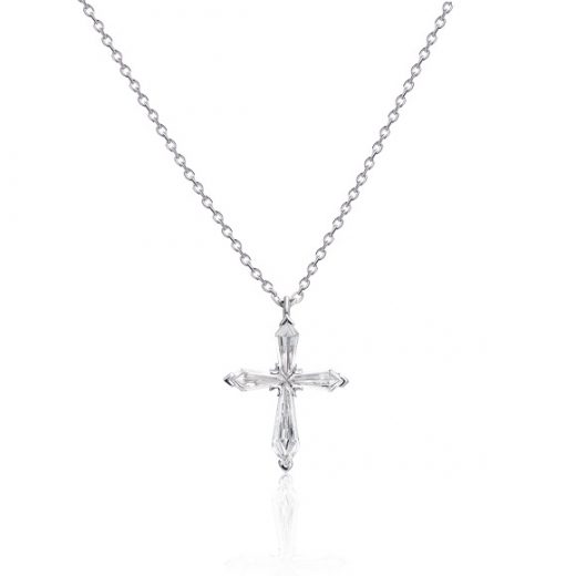 The cross is made of 750 white gold, weight: 2.88 grams. Kite cut diamonds with a total weight of 0.55 carats G-N/VS. The size of the cross: 1.0 x 1.4 cm . Chain length: 44 cm.