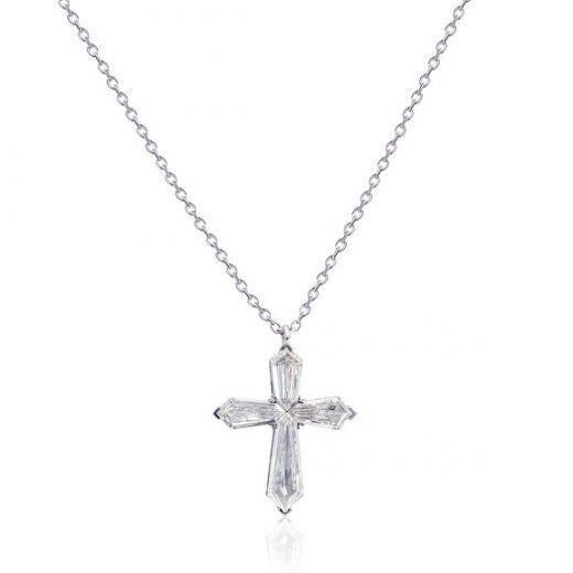 The cross is made of 750 white gold, weight: 5.18 grams. Kite cut diamonds with a total weight of: 2.96 carats G-I/IF-VS. GIA certificates. The size of the cross: 1.75 x 2.35 cm . Chain length: 44 cm.