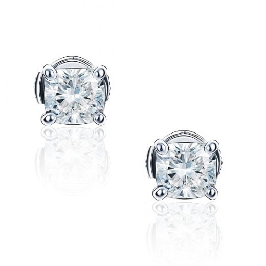 The stud earrings are made of 750 white gold with a spring lock. 1 Diamond Kushon 0.70car G/VS1 GIA 2466001429, 1 Diamond Kushon 0.70car G/VS1 GIA 6422984202