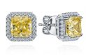 The earrings are made of 750 white gold. 2 Kushon cut diamonds weighing 3.21-3.33 carats Fancy Yellow/VVS-VS. GIA 2464304730-7456706846. 40 Round-cut diamonds weighing 0.69 carats G-H/VS.