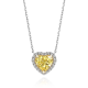 Pendant on a chain. It is made of white and yellow 750 gold. 1 1.01 carat Heart-cut diamond. Fancy Light Yellow/VS1 GIA 5483987209. 14 round-cut diamonds weighing 0.17 carats G-H/VS. Chain length: 40 cm.