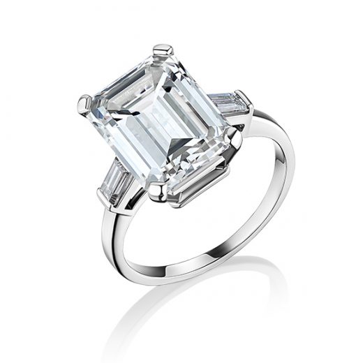 The ring is made of 750 white gold with 1 2.00-carat diamond G/VS1 GIA 2444313378, and 2 baguette diamonds weighing 0.46 carats G/VS. Size 16.5/52.