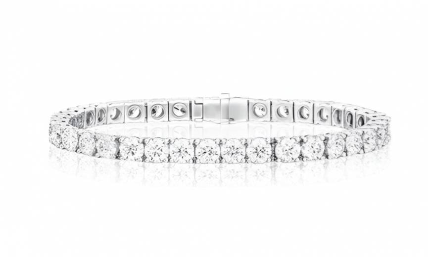 The bracelet is made of 750 white gold. 43 round-cut diamonds with a total weight of 8.05 carats. G-H/VS. Size: 17.5