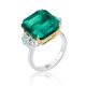 The ring is made of 750 white and yellow gold, inlaid with 1 12.00 carat Emerald Vivid Green Colombia and 2 diamonds Cadillac cut 0.83 carat G/VS. Size 17/53
