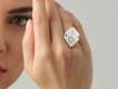 The ring is made of 750 white gold. 2 Diamonds (Modified Triangular Cut) weighing 4.02 — 4.03 carats. E/VS2 Certificates GIA 2231410496 — 5234409436. HRD Certificates No. 240000088552 — 240000088553. 2 Diamonds (Modified Triangular Cut) with a total weight of 0.82 carats. F-G/VS. 96 round-cut diamonds with a total weight of 1.45 carats. G-H/VS. Size 53/17