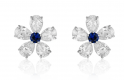 The earrings are made of 750 white gold. 10 Pear-cut diamonds with a total weight of 1.99 carats. E-G/VVS1-VS1. 2 Round-cut sapphires with a total weight of 0.19 carats.