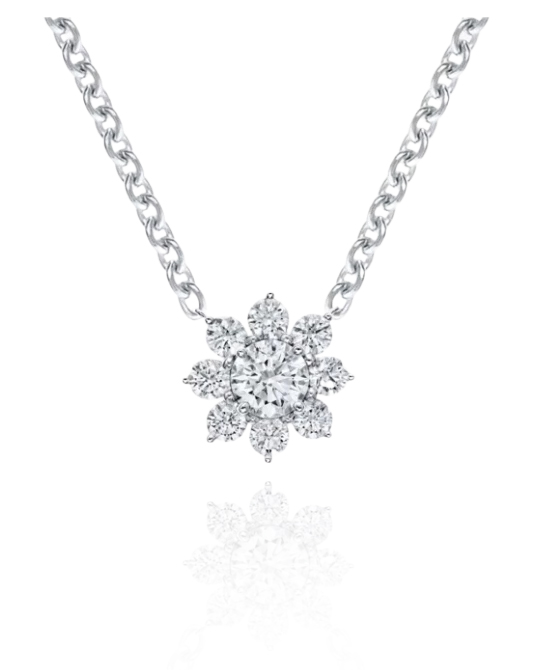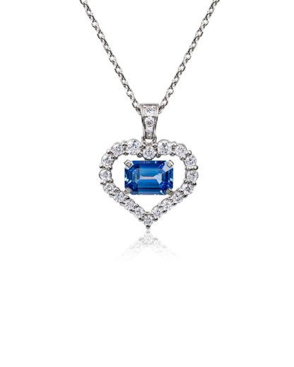 The pendant is made of 750 white gold. 1 sapphire 1.16 ct, color BLUE SRI LANKA CEYLON, 22 round diamonds 0.36 ct, color H, VS.