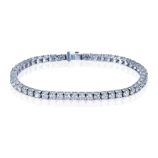 The bracelet is made of 750 sterling white gold. 55 round-cut diamonds with a total weight of 4.05 carats. F-G/VS. Size 17.5