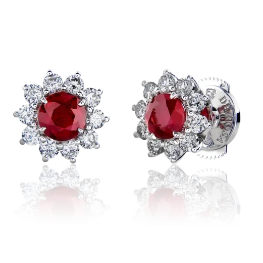 The earrings are made of 750 white gold. 2 round-cut rubies with a total weight of 263 carats. Intense Red. 20 round-cut diamonds with a total weight of 1.30 carats. G-H/VS.