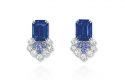 Earrings made in the style of Harry Winston (Candy collection), in 750 white gold. 2 Tanzanites totaling 15.99 carats Vivid violetish-blue (GFCO Gem Lab). The earrings are encrusted with a 2.01 carat G-H/VS brilliant-cut pave diamond and 6 Pear-cut Sapphires weighing 2.05 carats Blue* (H).