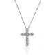 A cross with diamonds on a chain. Made of 750 white gold. Weight: 2.80 grams. 11 round-cut diamonds 0.53 carats. Color G-N. The purity of VS1. The size of the cross: 13×18 mm. The chain length is 36-45 cm .