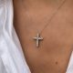 The diamond cross is made of 750 white gold, weight: 5.77 grams. 11 classic cut diamonds, total weight: 2.06 carats GH/VS. The size of the cross: 2.1×2.85 cm. Chain length: 36-42 cm.
