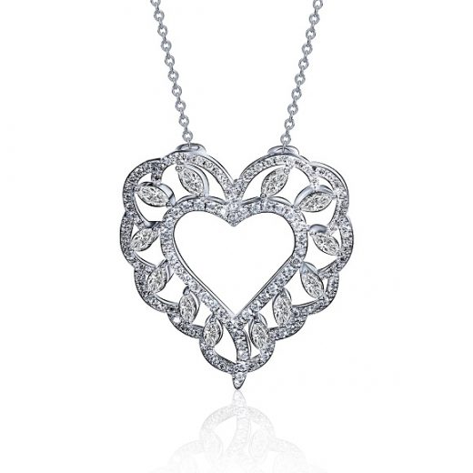 The pendant is made of 750 white gold, weight: 7.07 grams. 128 diamonds with a total weight of 1.30 carats. F-G/VS. The chain length is 34-44 cm . Suspension size: 2.85 x 2.6 cm .