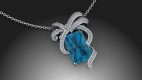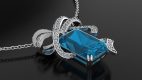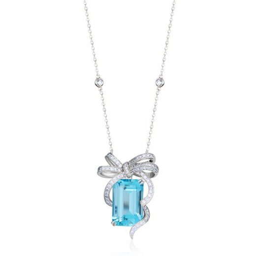 The pendant is made of 750 white gold. Aquamarine — 8.18 carats. Round-cut diamond pavé 0.79 carats. Chain length: 44 cm.