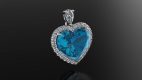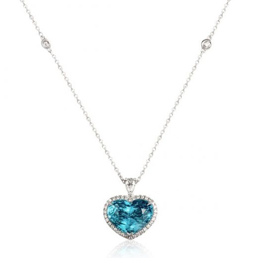 The pendant is made of 750 white gold. Weight: 10.80 grams. Round cut diamonds 0.79 carats G-H/VS. 1 zircon cut heart 20.46 carats. Chain length: 44 cm.