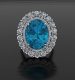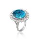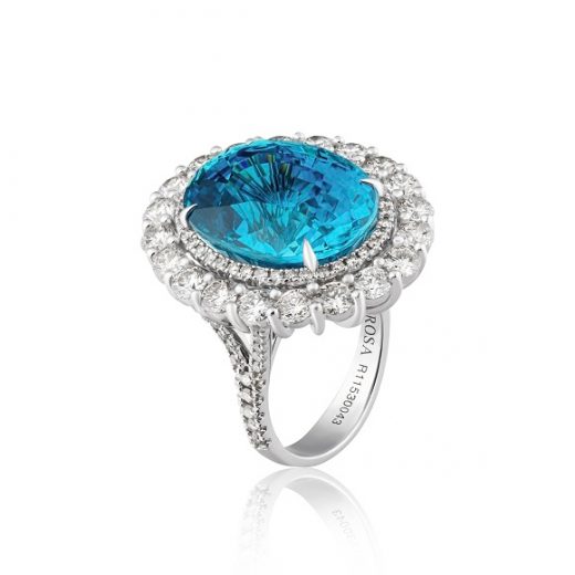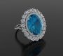 The ring is made of 750 white gold. Weight: 16.71 grams. Round cut diamonds 3.24 carats G-H/VS. 1 zircon cut oval 26.80 carats. Size: 54/17.