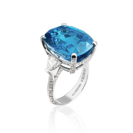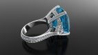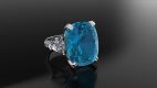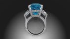 The ring is made of 750 white gold. Weight: 12.10 grams. Round-cut diamonds. 1 zircon cut oval 31.29 carats. Size: 54/17.